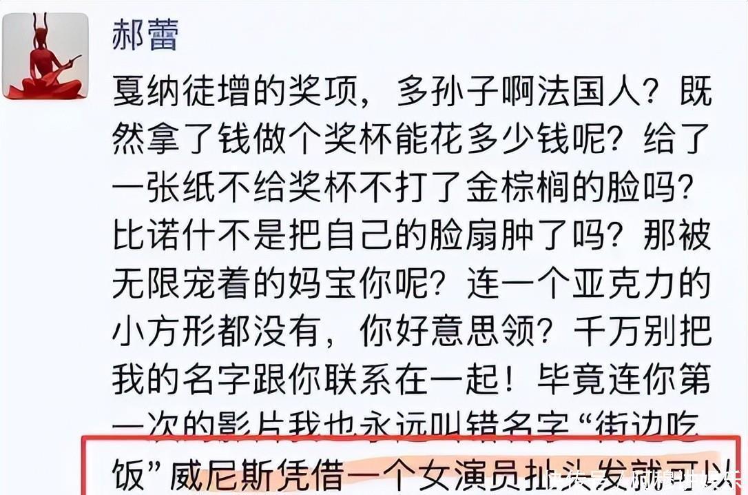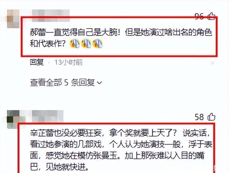 该说不说近些年郝蕾作品不算多,但在很多综艺中的犀利点评引发热议,如今又牵扯进这件事里受到舆论的热议,可以说是遭殃了。