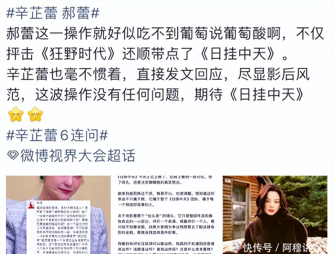 前有白百何发文硬刚《春树》导演和制片人,又有影后辛芷蕾怒怼“郝蕾”,娱乐圈可真是热闹啊!